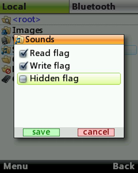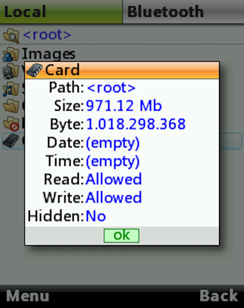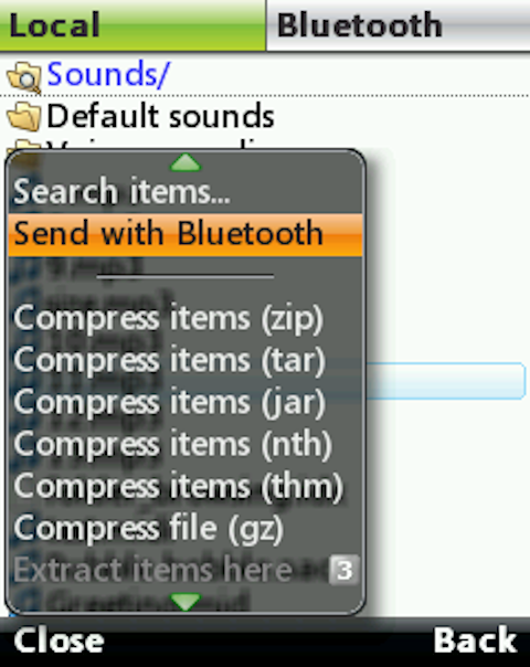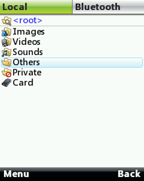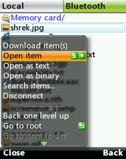 - Navigate on both local and Bluetooth filesystem using a single keypress (press [5] or [FIRE] key);