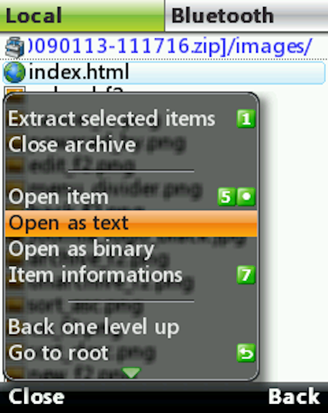 - Open/view the content of some files using the internal viewer (both local and Bluetooth filesystems);